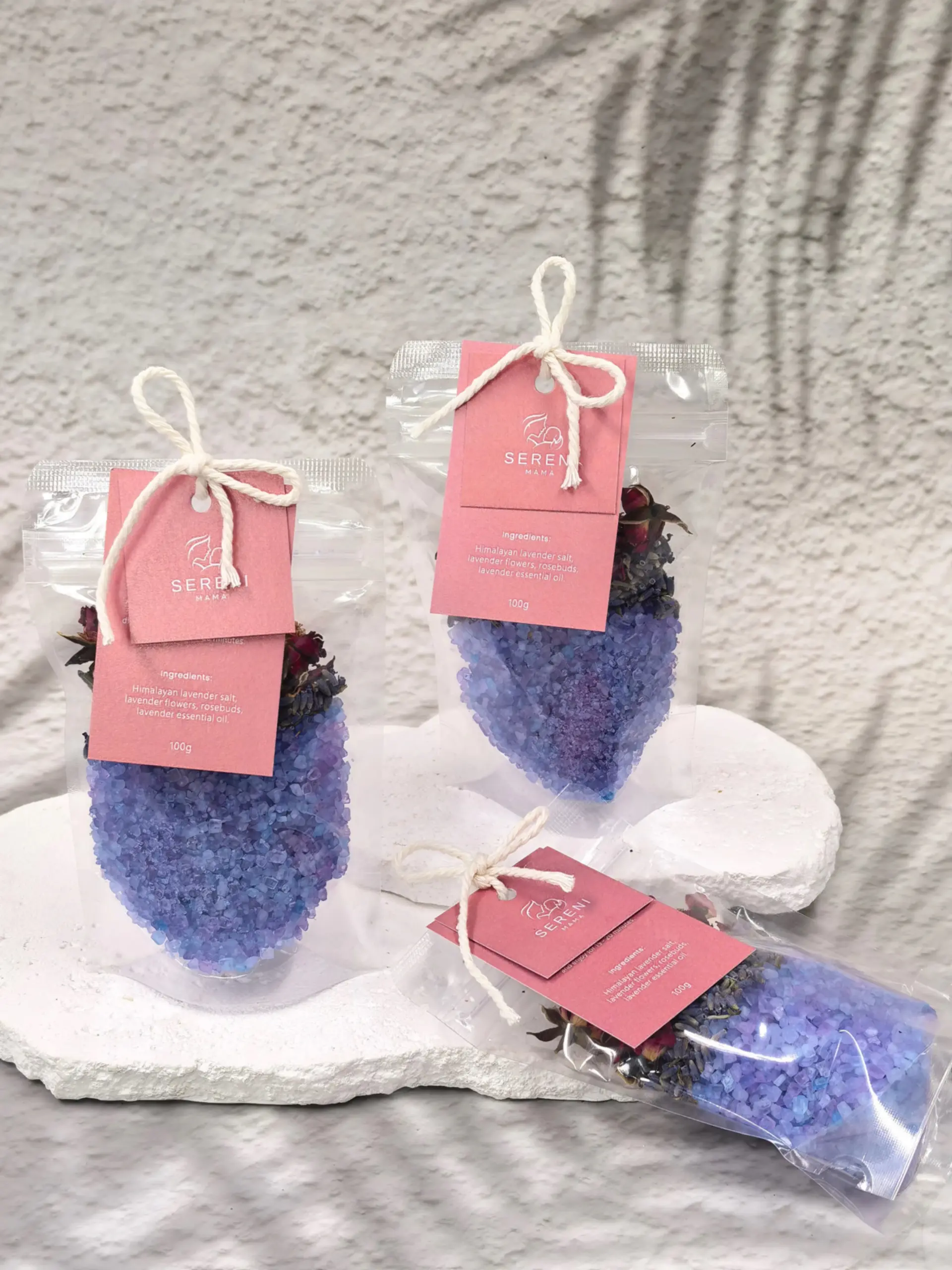 Indulge in a moment of pure serenity with our artisan-crafted Himalayan Lavender Bath Salts.